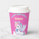 Paper Cups to a magical birthday party with an adorable unicorn with wings in the clouds.