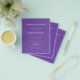 PAPER Royal Lila Modern and Simple Wedding Abend Party Einladung. Ein hochwertiges PAPER nicht Kartenalternative ohne Umschläge (A6 ist die nahe Größe, um zu passen). Die Farbe und der Typ des Schriftartes können über das Menü Bearbeiten geändert werden. Sie können auch Text- und Hintergrundfarben auf beiden Seiten ändern, wenn Sie möchten.