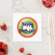 Ringe von immer größer werdender Form Mitte Bild (lila, blau, grün, gelb, orange, rot). Sie können den schwarzen Text mit weißem "Schatten" anpassen, der standardmäßig auf "Geburtstag glücklich!" steht.