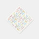 Leider ist beim Bestellvorgang nicht die Größe angegeben, zumindest habe ich es nicht gesehen. Der Name "Duschen"-Servietten ist etwas seltsam :-) Aber man kann aus verschiedenen Designs auswählen und es sieht ganz nett aus. Ich würde mir aber noch viel mehr verschiedene Farben und Muster wünschen! Insgesamt eine nette Idee für ein personalisiertes Accessoire zu allen möglichen Feiern. Der Druck ist OK, er ist nur ganz leicht unscharf.