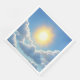 A bright yellow sun in a blue sky with white clouds covers this paper napkin.