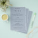 Einfache Typografie Dusty Blue Wedding Menü. Ein sehr gutes Preis-Leistungs-Verhältnis PAPER (nicht Karte) Alternative OHNE ENVELOPES zu einem günstigen Preis. Sie können auch den Stil und die Farben des Schriftartes sowie die Hintergrundfarben auf der Vorder- und Rückseite ändern, wenn Sie dies über die Option Klicken Sie auf Weitere Einstellungen.