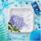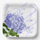 Party-Papier-Teller in der weißen Dinner-Größe mit einem Kunstdruck von einem schönen Single Hydrangea-Design gezeigt. Wir bieten eine Serviette, die zu dieser Papiertafel passt. Passen Sie dieses Objekt an oder kaufen Sie, wie es ist. Bild