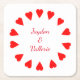 Rotes Herz formt sich in einem Kreis. Die Herzpartien zeigen in Richtung Mitte. Innerhalb des Kreises anpassen mit Namen/s in rotem Skript.