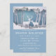 Papercut-Design in Blau und Weiß mit Bäumen und Reh.