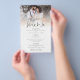 PAPIER | Foto-Overlay Hochzeitsmenü und Danksagung. Ein großartiger Wert in der Größe 5,5” x 8,5” als Alternative zu PAPIER. Kombinieren Sie Ihr Menü mit einer Dankesnachricht auf der Rückseite. Eine informelle Typografie in Schwarz für die Haupttitel Menü und Danke, die den Rest des Textes ergänzt, den Sie leicht personalisieren können.