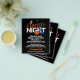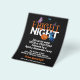 Eine preisgünstige PAPER Alternative OHNE ENVELOPES im KLEINEN Format 4.5" x 5.6" und zum günstigen Preis. (Standard A6 Umschläge sind die nächstgelegene Größe) Fright Night Halloween-Party Black Invite. Köstlich spooky Typografie für den Haupttext Fright Night in Orange und Weiß mit einer beängstigenden Katze, lächelnd Kürbis, Gespenst, Fledermaus und Hexenhut Motive auf schwarzem Hintergrund. Die Erholung des Textes kann leicht an Ihre eigenen Wörter personalisiert werden und die Farbe kann geändert werden, wenn Sie über die Option Weitere Einstellungen klicken möchten.