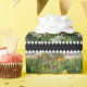 Das Bild auf diesem Produkt zeigt einen Garten mit Frühlingsblumen; die bunten Blüten in hübschen Farbtönen Gelb, Weiß, Rosa, lila, Lavendel und Fuchsia, mit einem lustigen Polka Dot Trim.