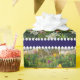 Das Bild auf diesem Produkt zeigt einen Garten mit Frühlingsblumen; die bunten Blüten in hübschen Farbtönen Gelb, Weiß, Rosa, lila, Lavendel und Fuchsia, mit einem lustigen Polka Dot Trim.