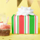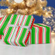 Dieses Verpackungspapier-Design ist mit einem weihnachtlich gestreiften Muster in Farben wie Rot, Weiß und Grün ausgestattet. Ein solches Wrapping-Papier kann bei der Vorbereitung von Geschenken oder Geschenken verwendet werden, die zum Feiern eines Geburtstags, einer Hochzeit, eines Jahrestages oder eines anderen Ereignisses gegeben werden.