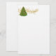 Das Papier aus Stationery wird in weißem Grundpapier mit einem festlichen Weihnachtsbaumkunstdruck dargestellt. Umschlag enthalten Anpassen Sie dieses Objekt oder kaufen Sie, wie es ist. Bild