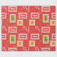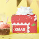 Nahtloses Muster mit Porto-Briefmarke, Konuskaramel und Reindeer. Weihnachtsmuster in Rot und Grün.