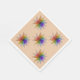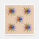 Federn erzeugen ein Farbrad. Jede Feder hat mehrere Grundfarben (Rot, Orange, Gelb, Grün, Blau, lila). Diese sechs Federn werden dupliziert und in der Mitte zusammengetragen, um ein Rad von 12 Federn zu bilden. 5 Gruppen von Federn auf dem hellbraunen Hintergrund angezeigt.