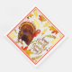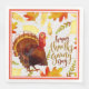 Diese Party-Servietten sind vielleicht das, was Sie für Ihren Erntedank Tag Party oder Desserttisch suchen. Feierlich orangefarbene Ränder mit hübschen Blätter in Herbstfarbe und einem Truthahn mit einem Feiertagsgruß des "Glücklichen Erntedankens". Anpassen oder kaufen, wie gezeigt. Archivbild www.freepik.com