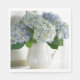Papierservietten aus Party in weißer Mittagsgröße mit einem Foto aus hübsch blauen Hydrangeas. Passen Sie dieses Objekt an oder kaufen Sie, wie es ist.