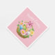 Papierservietten aus Party in weißer Mittagsgröße mit einem niedlichen Osterkorb mit Eiern und Frühlingsblumen bedruckt. Passen Sie dieses Objekt an oder kaufen Sie, wie es ist.