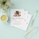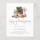 Eine preisgünstige PAPER Alternative OHNE ENVELOPES im KLEINEN Format 4.5" x 5.6" und zum günstigen Preis. (Standard A6 Umschläge sind die nächstgelegene Größe) Rustic Happy Thanksgiving von New Zuhause. Boho gemütliche Herbstszene Illustration eines Stuhls und Decke mit Kürbissen, und Blumen in Vasen und stilvolle Skript-Set Typografie für die Header Happy Thanksgiving. Personalisieren Sie die Erholung des Textes einfach mit Ihren Daten.