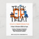 Eine preisgünstige PAPER Alternative OHNE ENVELOPES im KLEINEN Format 4.5" x 5.6" und zum günstigen Preis. (Standard A6 Umschläge sind die passende Größe). Künstlerischer Skripttrick oder Halloween-Party-Einladung behandeln. Laden Sie Ihre Freunde zu einem Trick or Treat Halloween-Party mit dieser unheimlichen Einladung ein! Die Haupt-Header-Typografie ist Set in Orange und Schwarz und in einem funky Skript mit Spinnennetzmotiven und einem Kürbis in einer Hexe, die Hut, Katze und Fledermäuse ergänzen die Lustigkeit! Der Text mit den Details kann leicht personalisiert werden, und Sie können auch die Farbe dieses Textes und die Hintergrundfarben auf der Vorder- und Rückseite ändern, indem Sie auf Weitere Einstellungen klicken.
