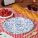 Papier-Teller mit Royalblauen französischen Toile- Pappteller
