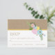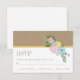 Rosa, aqua Vintage Blume und Kunsthandwerk Hochzeitszettel RSVP Antwort oder Antwortkarte mit hellbraunem handwerklichem Look Papier auf der Oberseite mit einem goldenen Streifen und eine Abbildung eines eleganten Bouquets von hellrosa, aquablau und gelb Blumen auf der oberen rechten Ecke. Dieses moderne Blumendesign mit Vintagem Hochzeitsdesign ist perfekt für ein Land, einen rustikalen Frühling oder eine Sommerhochzeit. Wählen Sie einen unserer Papiertypen mit Textur für beste Ergebnisse.