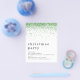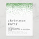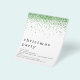 Eine preisgünstige PAPER Alternative OHNE ENVELOPES im KLEINEN Format 4.5" x 5.6" und zum günstigen Preis. (Standard A6 Umschläge sind die passende Größe). Green Glitzer Confetti Weihnachtsfeiertag Party einladen. Der Header ist groß in stilvollen Kleinbuchstaben mit den Details unten. Viel Weiß für ein zeitgenössisches Ambiente und beiderseits ein Rand von konfetti-grünem Glitzer. Personalisieren Sie den Text einfach auf Ihre eigenen Daten.