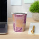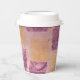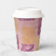 Diese Papiertassen sind mit einem hübschen, weichen Gel-Druck aus lila und goldfarbenen Quadraten versehen.