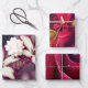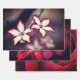 Papierblätter umhüllen, Set von drei mit Orchideen-Bildern und einem Makro-Bild einer Rose.