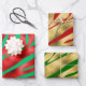 Maßgeschneiderte Papierblätter mit festlichem Gold-, Rot- und Gründruck. Enthält Set von (3) drei Packpapierblättern.
