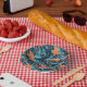 Ein wunderschönes Set aus Papierschalen mit einem nahtlosen Blumenmuster aus Papier vor blauem Hintergrund.