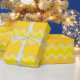 Eine Rolle von schicker Giftpackung, mit einem Zickzack Muster in den Farbtönen düster Gelb, von einem handbemalten Aquarelldesign von Judy Adamson. Teil der Posh & Painterly 'Daffy-down-Dillies' Kollektion.