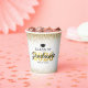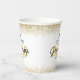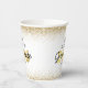 Personalisierte Graduiertenparty-Papiertassen mit einem Graduiertencap, 2023 in Imitaten Goldfolie, Schulname, elegante Golden Glitzer Kanten und das Wort Graduate in einem Skript-Schriftart.