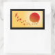 Papierkran bilden sich in die aufgehende Sonne. Rechteckiger Aufkleber