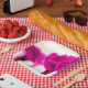 Papierplatte aus rosa Karton Pappteller