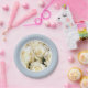 Party Papierplatte in Blue Fog Farbe mit einem schönen Elfenbeindruck-Design. Passen Sie diese Platte an oder kaufen Sie wie besetzt. Archivbild freepik.com