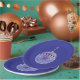 Holiday Ornament in blau. Tinte gezeichnet von einer runden Baumdekoration mit "Weltfrieden" unter 3D aussehenden Arkaden, die das "Dach" des Orbs unterstützen. Inside text kann geändert werden. Hintergrund von blau. Original-Kunstwerk von John Alexander Muir.