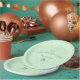 Personifizieren Sie diese punktierte und grüne Platte der Polkas für ein willkommenes Baby-Party.