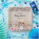 Papiertafel für Babydusche mit bezaubernden Aquarellfarben-Rose und niedlich gestopftem Hasen.