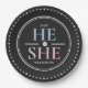Personalisiertes Geschlecht offenbart Er oder Sie Papier Teller mit dunklem Hintergrund und rosa & blau Zeichen. Besuchen Sie den Shop, um alle Kollektionen zu sehen!