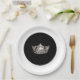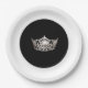 Papierplatte aus Party in Schwarz-Weiß-Combo-Farbgebung mit Silberseitenkronenprint in der Mitte. Fügen Sie Ihren personalisierten Text, falls gewünscht, hinzu oder ändern Sie die Farbe der äußeren Felge. Passen Sie diese Platte an oder kaufen Sie wie gezeigt.