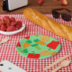 Dieses Papier Teller Design hat vier verschiedene bunte Gemüse. Karotten, Kartoffeln, Brokkoli und Pfeffer-Zeichnungen machen Spaß.
