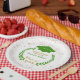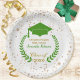 Papier Teller für das spezielle High School oder Uni-Abschluss Party mit personalisiertem Text. Verfügt über ein Bild von einem grünen Gradmütze und Lorbeerkranz mit Akzent mit Imitaten goldenen Konfetti. Siehe passende Servietten und andere Farbgruppen auch in diesem Design verfügbar