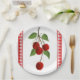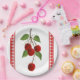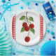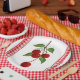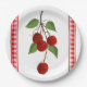 Diese Teller sind mit einem Acrylgemälde von Kirschen mit einem Stück roten und weißen Gingham versehen.