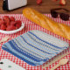 Papierplatte - Häkelmuster in Blau und Weiß Pappteller