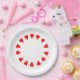 Rotes Herz formt sich in einem Kreis an der Kante des Tellers. Die Herzpartien zeigen in Richtung Mitte.