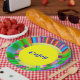 Papierplatte mit kreisförmigem Mosaik-Farbdesign Pappteller