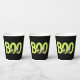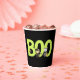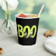 Mit seinen hübschen, charmanten und farbenfrohen Illustrationen von niedlichen Tieren, die in Halloween-Kostümen gekleidet sind, mit großer "boo" Typografie, ist dieser Papierbecher eine großartige Ergänzung zu einem lustigen und sprichwörtlichen Halloween-Party. Option, um die Nachricht anzupassen.