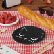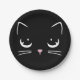 Ideal für Ihre Geburtstagsfeier mit Kätzchen - niedliches Kätzchen Gesicht mit großen Augen auf dunklem schwarzen Papierteller. Transfer Design zu jedem Produkt für einen vollständigen KatzenGeburtstag für diese spezielle Person.