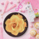 Teller aus Gelbrosenpapier ... Ich habe dieses digitale Foto selbst in einem weißen Raum gebadet, in dem Licht von einem Dutzend Lampen gebadet ... auf einem matten schwarzen Hintergrund ... mit einem Timer und Stativ ... Makroeinstellung ... einer Porzellan-Rose. Der Effekt, den ich "gebadet in Licht".