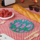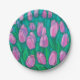 Papierplatte mit farbenprächtigen Blumengemälden, smaragdgrünes Feld voll von schönen Frühlingsblumen. Rosa Tulpen symbolisieren ein Gefühl von Glück, Selbstvertrauen und Positivität. Dieses Kunstwerk passt hervorragend zu Ostern- oder Frauentagen, oder als Geburtstagsgeschenk für Mädchen und Frauen. Farbpalette: Smaragd, Minze und Viridian Green, Pink, Lavendel. © Clipso-Callipso / Julia Khoroshikh www.juliakhoroshikh.ar #tulipsart #pinktulips#tulipainting #springblumen #floralart #floralprint #springblussom