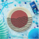 Minimalistische Bauhaus Wandkunst mit einer kühnen roten Sonne und fließenden schwarzen Wellen. Modern, abstrakt und perfekt für stilvolle Wohngestaltung.